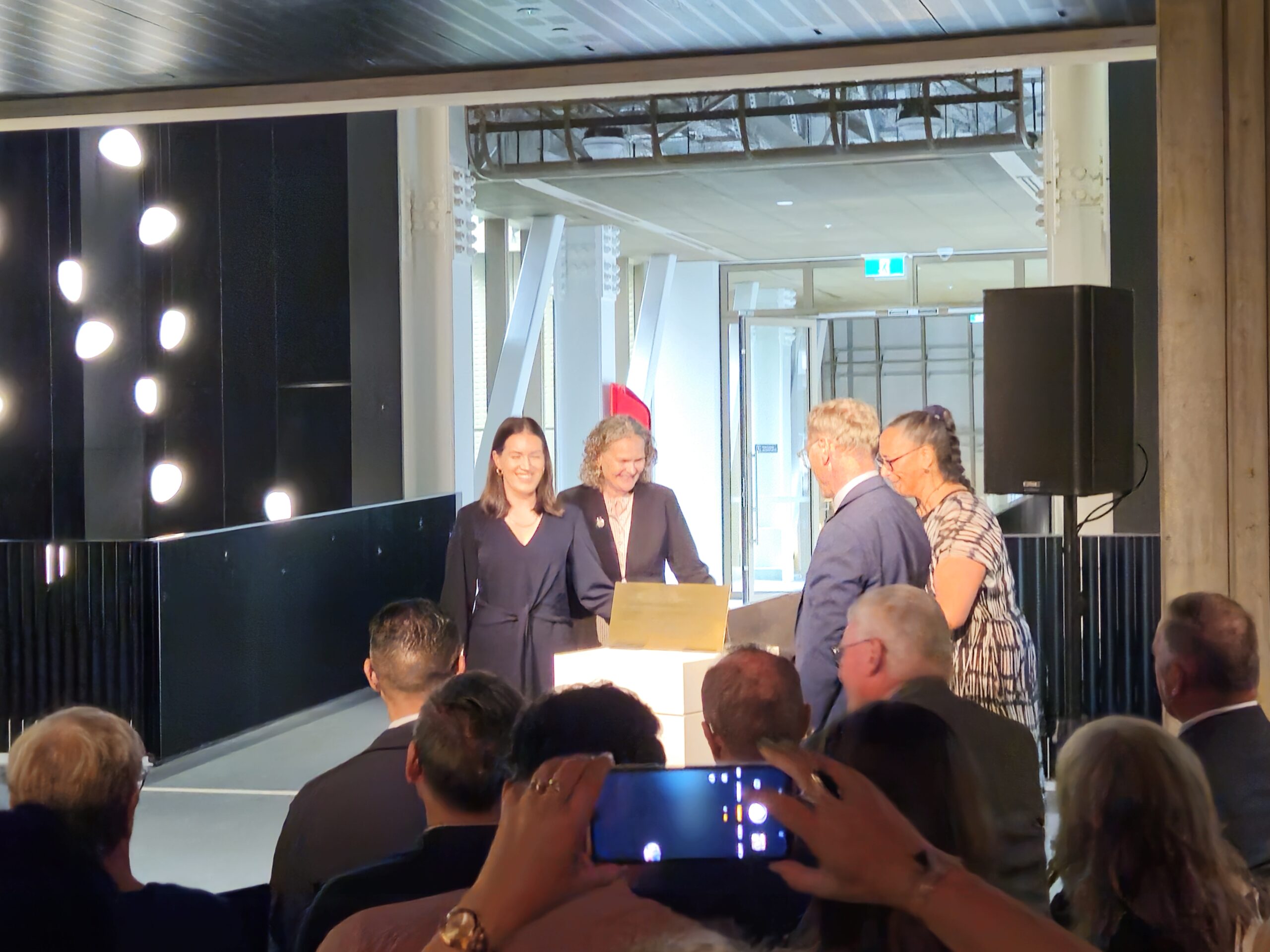 The ceremony was opened with a beautiful pōwhiri, followed by National Librarian | Te Pouhuaki Rachel Esson, who talked about the trials and tribulations along the way of this massive undertaking. Rachel noted that what had stood out was the new, collaborative approach that all staff of the institutions had adapted to, not only linking the buildings physically, but also collegially. Next was Minister for Department of Internal Affairs, Brooke Van Velden, talking about the importance of the new building, the public-private partnership that brought it to fruition, and the maintenance of New Zealand’s history in a safe and secure location.